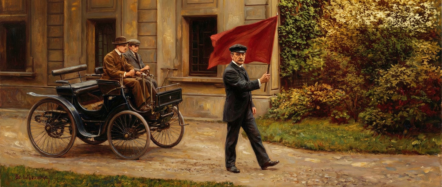 The Locomotives Act of 1865 sought to protect horse-drawn industries from encroachment. It was repealed in 1896. (Image: authors)